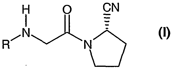 - the /V-( ⁇ /'-substituted glycyl)-2-cyanopyrrolidine is represented by formula (I), wherein