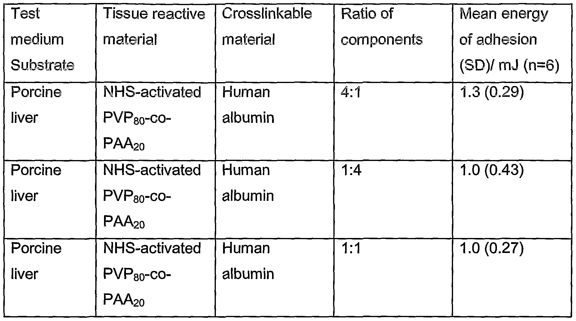 - On contact with the tissue surface the formulation becomes hydrated, thereby causing reaction between the tissue-reactive functional groups and the underlying tissue surface.