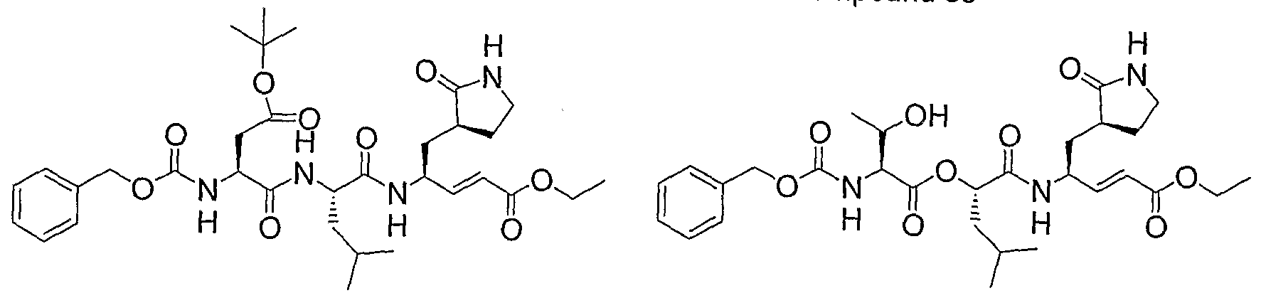 Example 103: Preparation of compound 103 Compound 103 was prepared in a manner similar to that described in Example 1 in a 63% yield. 1HNMR(CDC13) δ 0.94-0.98 (m, 6H), 1.06 (d, 3H, J = 5.7 Hz), 1.27 (s, 9H), 1.53-2.10 (m, 6H), 2.38-2.43 (m, 2H), 3.28-3.30 (m, 2H), 3.72 (s, 3H), 4.16 (br, 2H), 4.48 (m, IH), 4.59 (m, IH), 5.11 (q, 2H, J = 6.6 Hz), 5.93 (d, 2H, J = 15.9 Hz), 6.12 (br, IH), 6.84 (dd, IH, J = 15.6 Hz, 5.1 Hz), 7.35-7.39 (m, 5H), 7.65 (d, IH, J = 6.9 Hz).