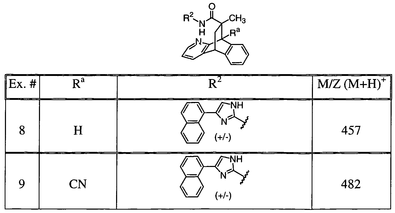 NMR spectral data: s = singlet; d = doublet; m = multiplet; br = broad; t = triplet mp = melting point Preparations The preparations set out below are for the synthesis of reagents that were not obtained from commercial sources and were employed for the preparation of compounds of formula I of the invention. All chemical structures in the tables and schemes are racemic unless specified otherwise.