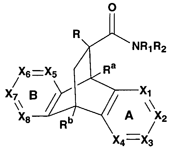 2 are the same or different and are independently selected from hydrogen, alkyl, alkenyl, alkynyl, alkoxy, cycloalkyl, cycloalkylalkyl, aryl, heteroaryl, heteroarylalkyl, cycloheteroalkyl, cycloalkenyl, monoalkylaminoalkyl, dialkylaminoalkyl, cycloheteroalkylalkyl, hydroxyaryl, aryloxyalkyl, alkoxyalkyl or hydroxyalkyl, and wherein t is 1 or 2; and the A and B rings represent saturated, partially saturated or unsaturated 6- membered carbocyclic or heterocyclic rings; Xi, X