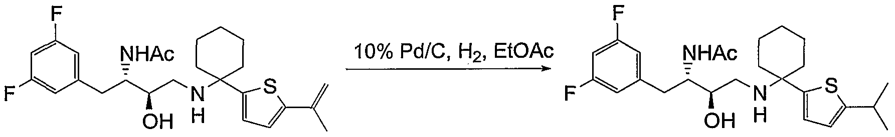 or secondary cells expressing native, mutant, and/or synthetic APP and enzyme, animal models expressing native APP and enzyme, or can utilize transgenic animal models expressing the substrate and enzyme. Detection of enzymatic activity can be by analysis of at least one of the cleavage products, for example, by immunoassay, fluorometric or chromogenic assay, HPLC, or other means of detection. Inhibitory compounds are determined as those able to decrease the amount of beta-secretase cleavage product produced in comparison to a control, where beta-secretase mediated cleavage in the reaction system is observed and measured in the absence of inhibitory compounds. For example, efficacy values yield information regarding a compound's preference for a target tissue by comparing the compound's effect on multiple (i.e., two) tissues. See, for example, Dovey et al., J. Neurochemistry, 2001 , 76:173-181. Efficacy reflects the ability of compounds to target a specific tissue and create the desired result (e.g., clinically). Efficacious compositions and corresponding methods of treatment are needed to prevent or treat conditions and diseases associated with amyloidosis. Efficacious compounds of the present invention are those able to decrease the amount of A-beta produced compared to a control, where beta-secretase mediated cleavage is observed and measured in the absence of the compounds. Detection of efficacy can be by analysis of A-beta levels, for example, by immunoassay, fluorometric or chromogenic assay, HPLC, or other means of detection. The efficacy of the compounds of formula (I) was determined as a percentage inhibition corresponding to A-beta concentrations for tissue treated and untreated with a compound of formula (I).