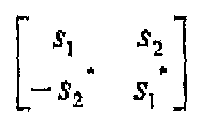 a channel parameter matrix corresponding to the STBC code above, and yi, i=l to 4 represent the originally transmitted symbols.