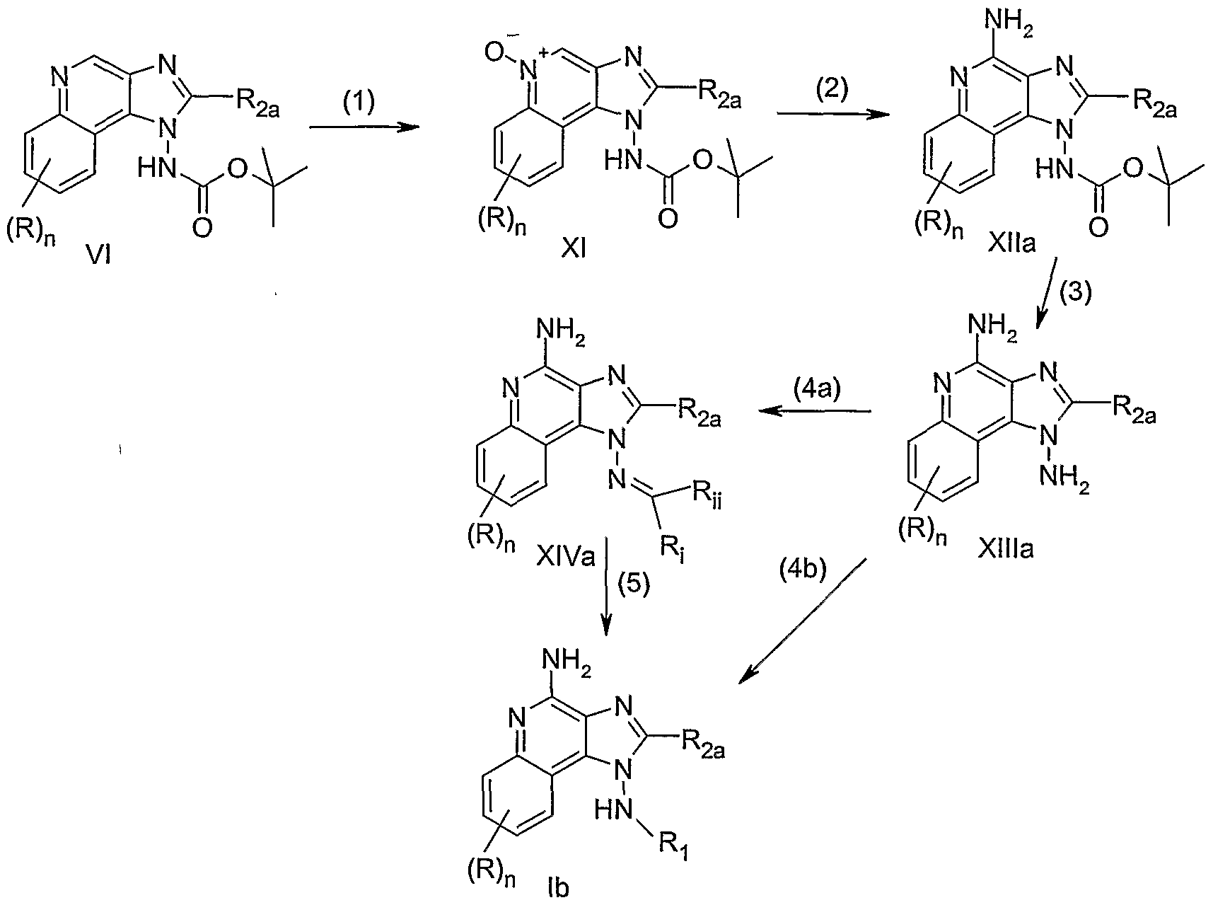 -X-C(R7)-N(R6)-R4, -X-O-C(Rv)-N(Re)-R4, -X-S(O)2-N(Re)-R4, and -X-O-R4; or R1' and Ri together with the nitrogen atom to which they are bonded can join to form a group selected from the group consisting of: