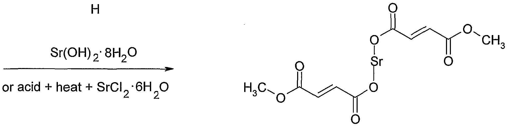 - the sodium salt of the fumaric acid is commercially available (e.g. from Alfa Aesar or Sigma- Aldrich). Synthesis of the monomethyl ester of fumaric acid has been described by Zhong et al. [Synthesis of mold inhibitor monomethyl fumarate. Jingxi Huagong (2002), 19(6), 343- 345], as shown in Scheme 1, and is commercially available from Sanmenxia xiawei chemical co., ltd., China. To the best of the inventors' knowledge, neither strontium salts of monoalkylesters of fumaric acid nor methods for their production/synthesis have been described before.