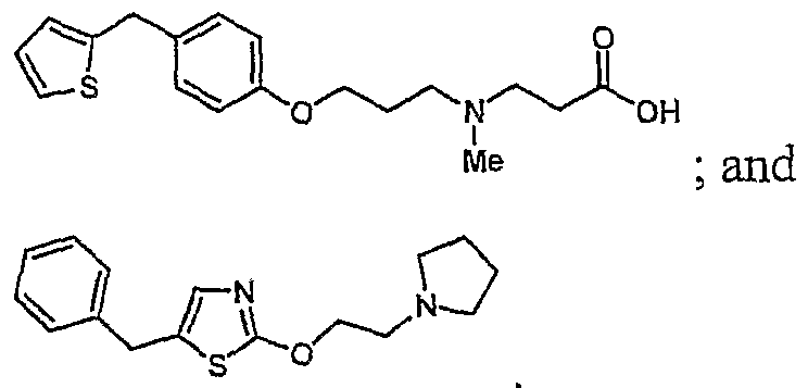 - GMDFARFIYKWUOZ-UHFFFAOYSA-N CN(CCCOc1ccc(Cc2ccc[s]2)cc1)CCC(O)=O Chemical compound CN(CCCOc1ccc(Cc2ccc[s]2)cc1)CCC(O)=O GMDFARFIYKWUOZ-UHFFFAOYSA-N 0.000 description 1