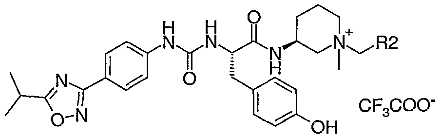 Λ/-{[(5-{[(cyclohexylmethyl)oxy]carbonyl}-2-thienyl)amino]carbonyl}-Λ/-{(3S)-1-[(4- chlorophenyl)methyl]-1-methyl-3-piperidiniumyl}-L-tyrosinamide trifluoroacetate; /V-{[(5-{[(cyclopentylmethyl)oxy]carbonyl}-2-thienyl)amino]carbonyl}-/V-{(3S)-1-[(3- hydroxyphenyOmethyO-i-methyl-S-piperidiniumylJ-L-tyrosinamide trifluoroacetate; Λ/-{[(5-{[(cyclopentylmθthyl)oxy]carbonyl}-2-thienyl)amino]carbonyl}-Λ/-{(3S)-1-[(3- chlorophenyOmethyll-i-methyl-S-piperidiniumylJ-L-tyrosinamide trifluoroacetate; /\/-{[(5-{[(cyclopentylmethyl)oxy]carbonyI}-2-thienyl)amino]carbonyl}-/\/-{(3S)-1-[(4- chlorophenyOmethyπ-i-methyl-S-piperidiniumylJ-L-tyrosinamide trifluoroacetate; and