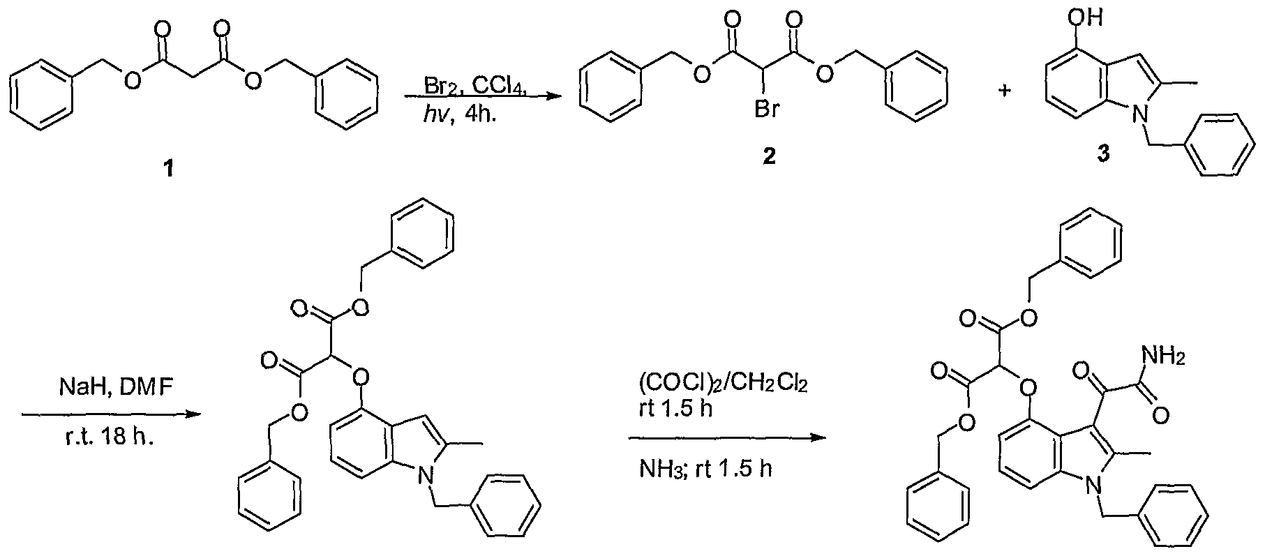 - HVXHQTZFVKXTFC-UHFFFAOYSA-N CC(C)(C)C(C(O)=O)Oc1cccc2c1c(C(C(N)=O)=O)c(C)[n]2Cc1ccccc1 Chemical compound CC(C)(C)C(C(O)=O)Oc1cccc2c1c(C(C(N)=O)=O)c(C)[n]2Cc1ccccc1 HVXHQTZFVKXTFC-UHFFFAOYSA-N 0.000 description 1