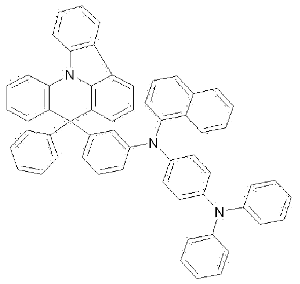 4-(N-phenyl-N-biphenylamino)-biphenyl-N'-naphthylamine (3.8 g, 7.1 mmol) were dissolved in 40 ml of toluene, and sodium-tertiary-butoxide (1.94 g, 22.4 mmol), bisdibenzylidene acetone palladium(O) (0.081 g, 0.14 mmol), and 50 wt% tri- tertiary-butylphosphine toluene solution (0.11 ml, 0.22 mmol) were added thereto. After reflux was conducted in a nitrogen atmosphere for 2 hours, distilled water was added to the reaction solution to complete the reaction. The organic layer was extracted, and a column separation process was conducted using a solvent of n-hexane and tetrahydrofuran (n-hexane/THF = 8/1), stirring was conducted using petroleum