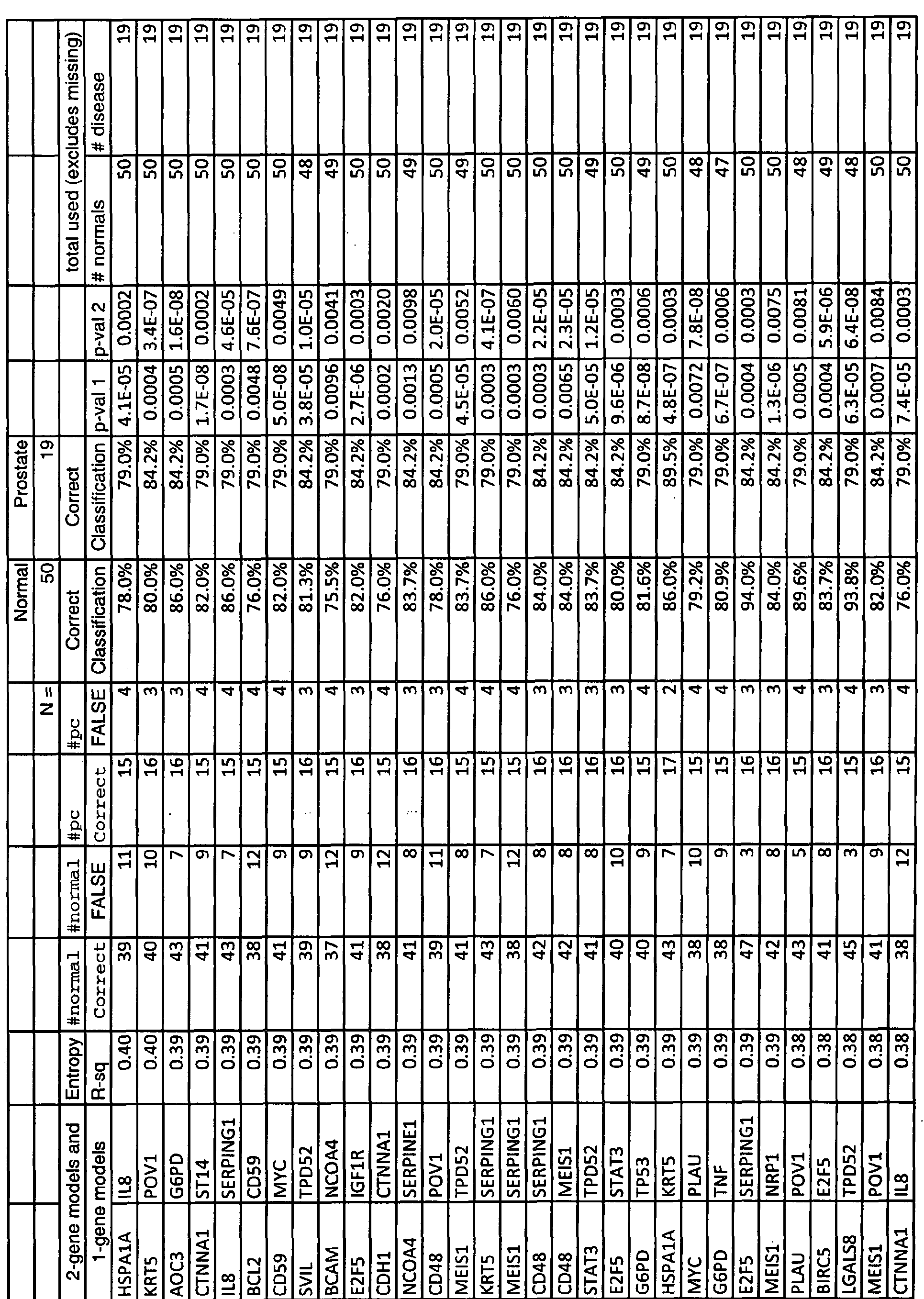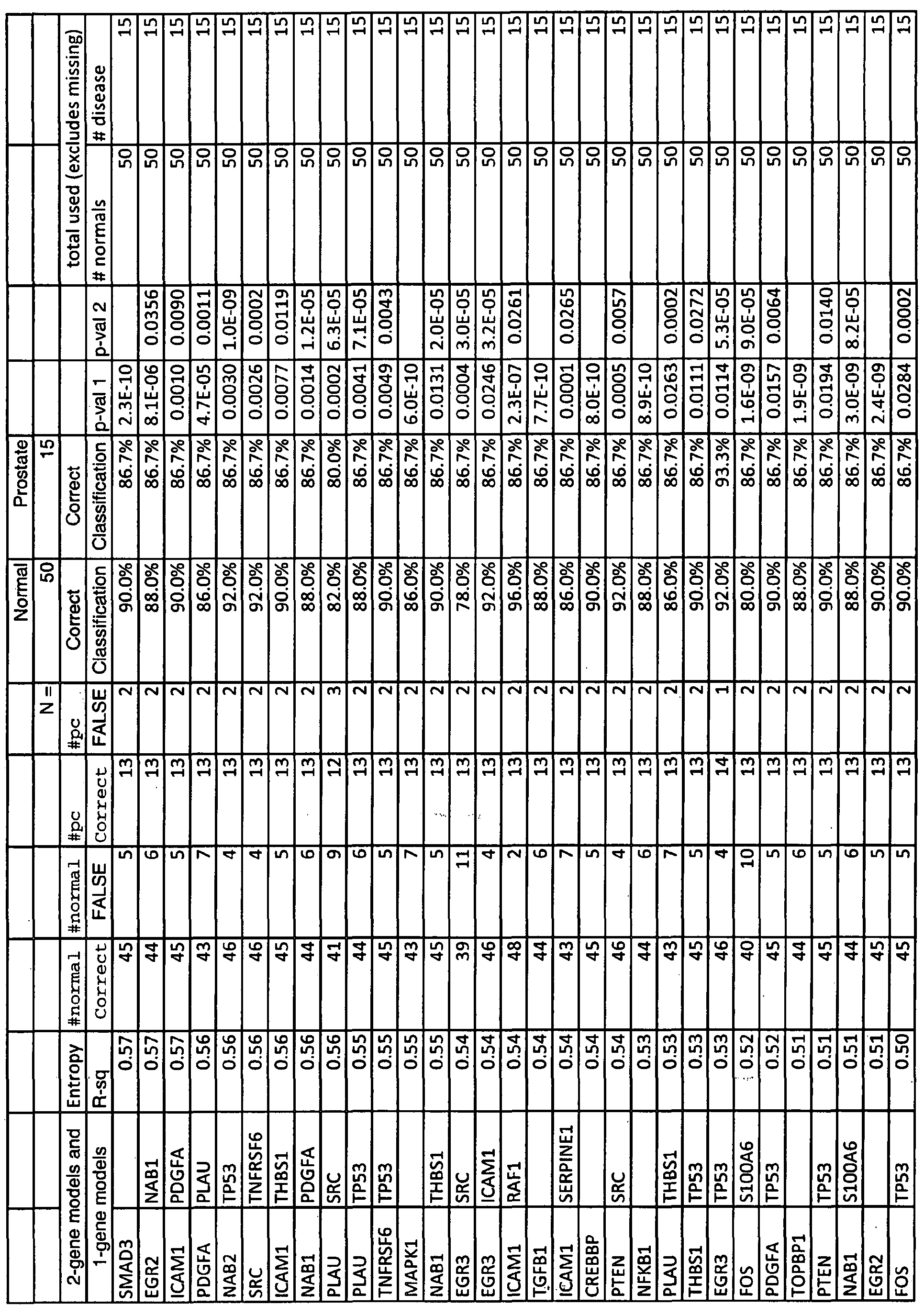 - accuracy is meant that the method has the ability to distinguish, e.g., classify, between subjects having prostate cancer or conditions associated with prostate cancer, and those that do not. Accuracy is determined for example by comparing the results of the Gene Precision ProfilingTM to standard accepted clinical methods of diagnosing prostate cancer, e.g., PSA test, digital rectal exam, and biopsy procedures.
