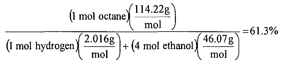 - the molecular weight distribution of the low- molecular-weight hydrocarbon stream 20 depends upon operating temperatures and the amount of buffer used. Lower temperatures, (e.g., 40 degrees Celsius) may favor higher alcohols while higher temperatures (e.g., 55 degrees Celsius) may favor lower alcohols. Calcium carbonate buffer may favor higher alcohols while ammonium bicarbonate buffer may favor lower alcohols .
