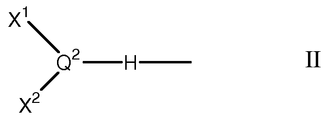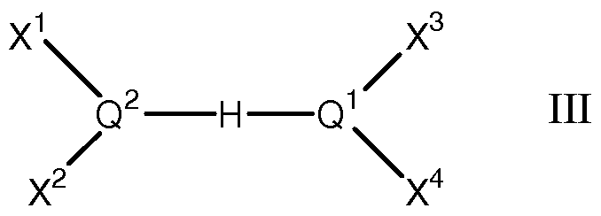 - the groups X 1 , X 2 , X 3 and X 4 independently represent univalent radicals of up to 30 atoms, optionally having at least one tertiary carbon atom via which the group is joined to the Q 1 or Q 2 atom, or X 1 and X 2 and/or X 3 and X 4 together form a bivalent radical of up to 40 atoms, optionally having at least two tertiary carbon atoms via which the radical is joined to the Q 1 and/or Q 2 atom; and