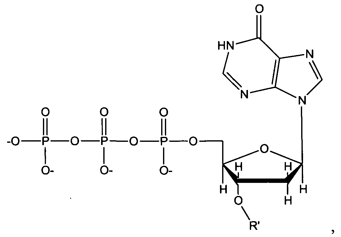 - a method for determining the identity of each of a series of consecutive nucleotide residues in a nucleic acid comprising: a) contacting a plurality of the nucleic acids with (i) a dideoxynucleotide triphosphate (ddNTP) analogue having the structure: