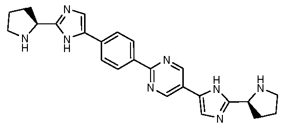 Example Ml 21 dimethyl ((2-((dimethylamino)methyl)-4,4'-biphenyldiyl)bis(lH-imidazole-5,2- diyl(2S)-2,l-pyrrolidinediyl((lR)-2-oxo-l-phenyl-2,l-ethanediyl)))biscarbamate