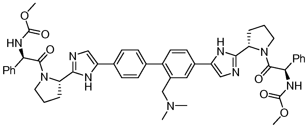 ((methoxycarbonyl)amino)-3-methylbutanoyl)-2-pyrrolidinyl)-lH-imidazol-5-yl)-4- biphenylyl)-lH-imidazol-2-yl)-l-pyrrolidinyl)carbonyl)-2-methylpropyl)carbamate
