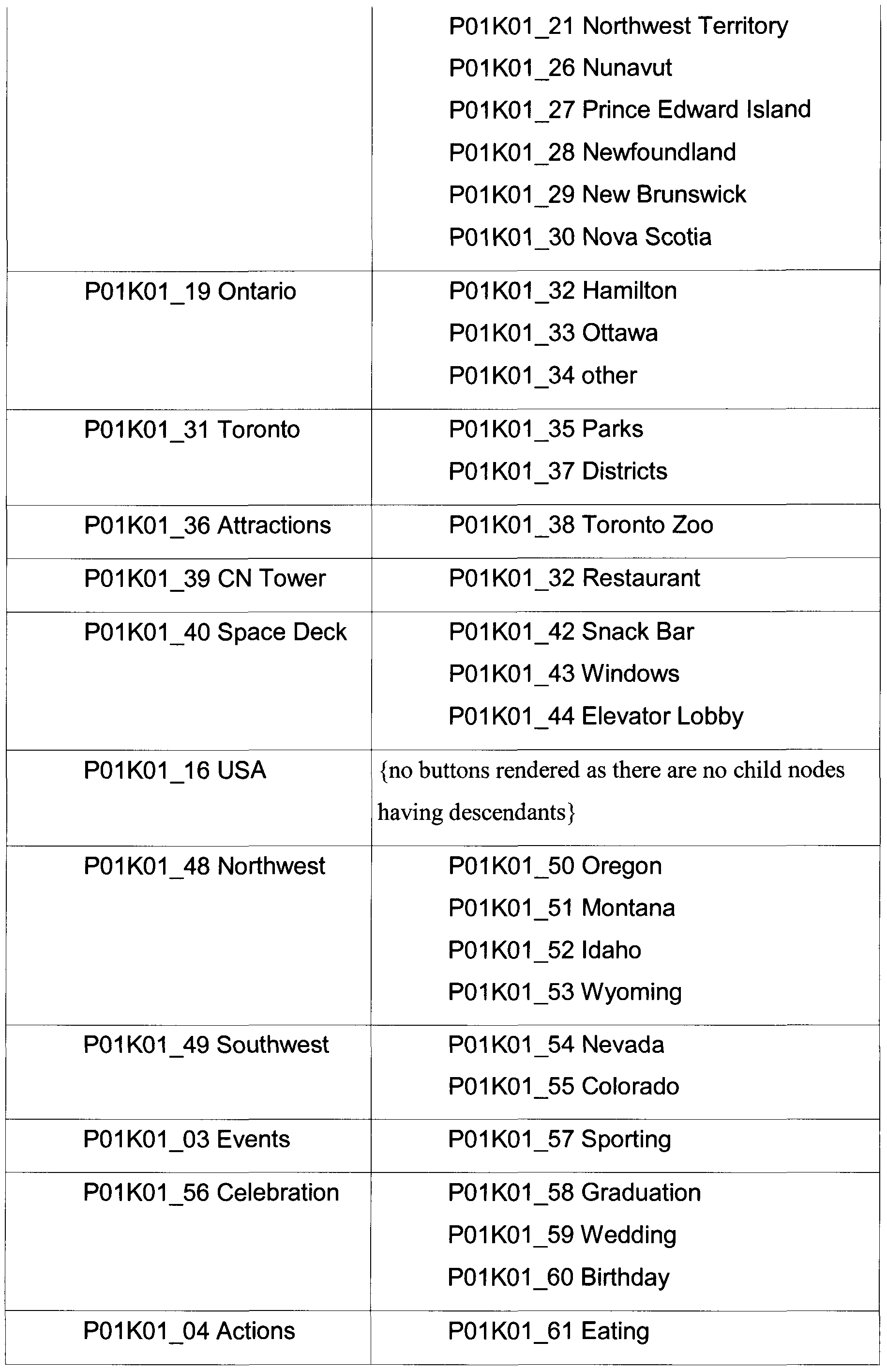 - the invention provides a computer readable medium encoded with computer-executable instructions which, when executed by a computer, perform a method of associating a representation of an item with one or more choices, wherein said representation of said item is encoded on a computer readable medium, and wherein the method comprises: a) displaying a user interface to a user for the selection of said one or more choices from a set of choices, wherein said set of choices comprises a hierarchal structure with one or more nested node subsets; b) activating a first primary node as an active node; c) presenting a node subset belonging to said active node to said user and receiving input from said user, wherein said user may select a choice to associate with said representation of said item by selecting a leaf node, or said user may modify said active node by choosing an intermediate node or a primary node, wherein said chosen node is activated as said active node without requiring further input from said user; d) repeating step (c) until