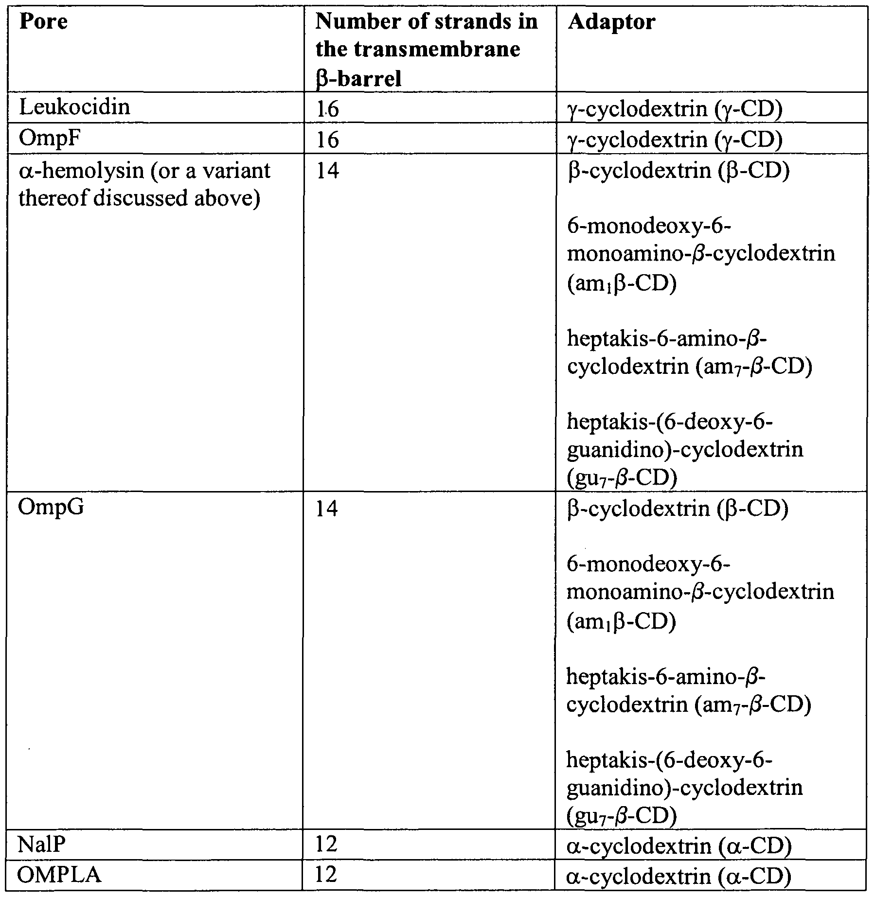 transmembrane protein pore" includes two or more such pores, reference to "a molecular adaptor" includes two or more such adaptors, and the like.