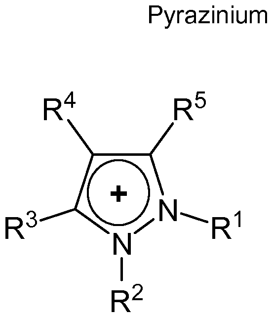 - These rings can be alkylated with virtually any straight, branched or cyclic C 1-20 alkyl group, but preferably, the alkyl groups are C M 6 groups, since groups larger than this may produce low melting solids rather than ionic liquids.