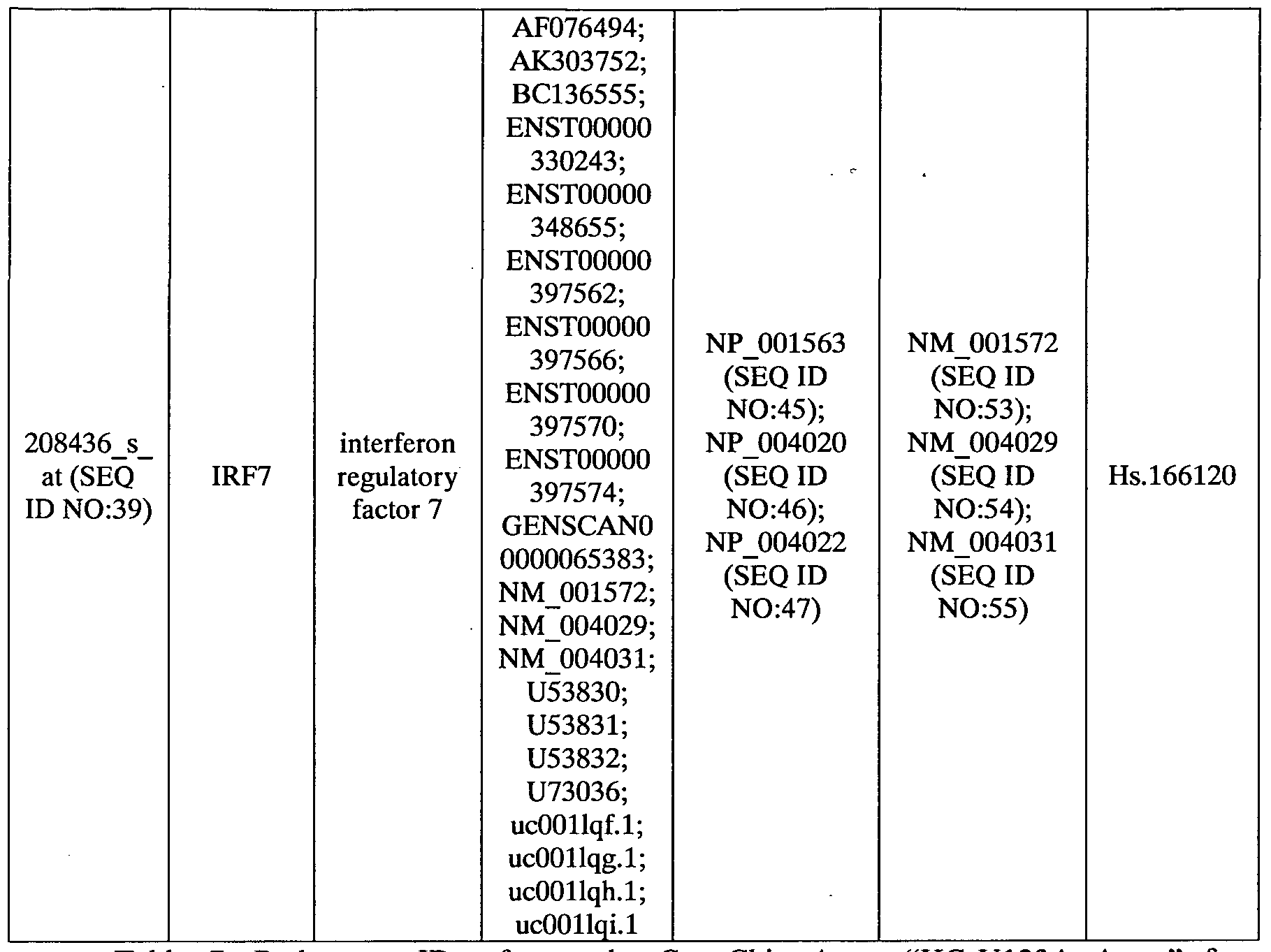 - the subject when a level of expression of the at least one gene in the cell of the subject is identical or changed below a predetermined threshold as compared to the reference expression data of the at least one gene obtained from the at least one interferon responder subject, then the subject is classified as responsive to interferon.