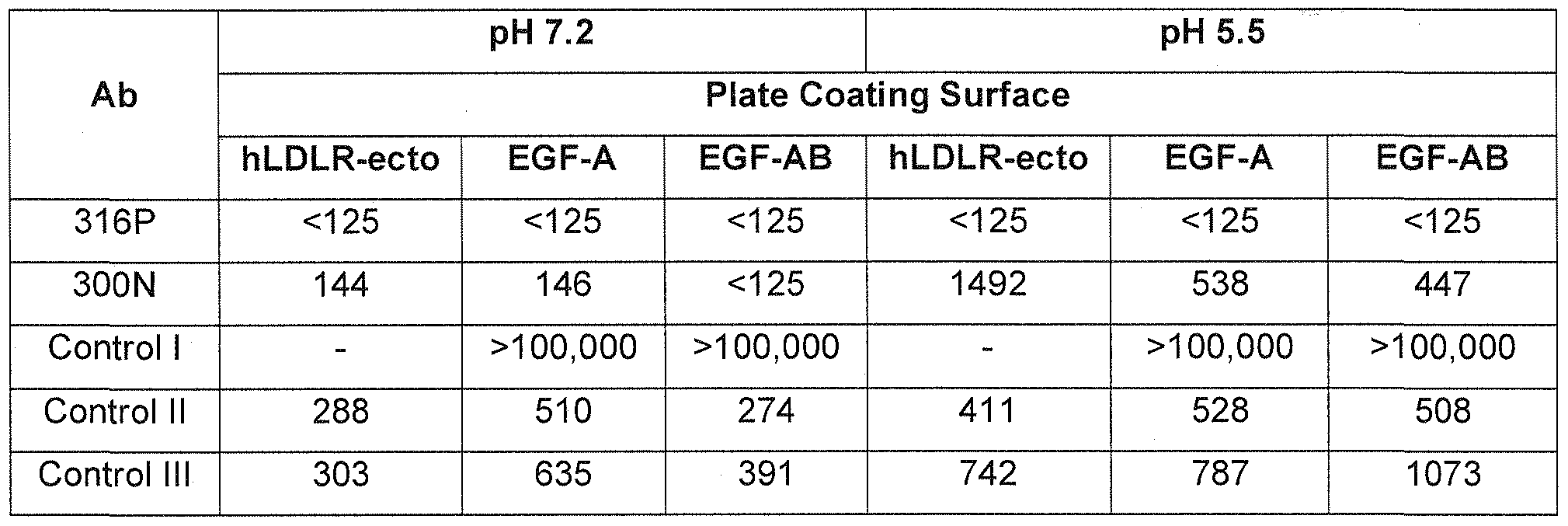 - the antibody or fragment thereof is characterized as binding an epitope comprising amino acid residue 366 of hPCSK9 (SEQ ID NO:755). In a more specific embodiment, the antibody fragment thereof binds an epitope comprising one or more of amino acid residue at position 147, 366 and 380 of SEQ ID NO:755. In a more specific embodiment, the antibody or fragment thereof is characterized as binding an epitope which does not comprise an amino acid residue at position 215 and/or 238 of SEQ ID NO:755. [0009] In one embodiment, the antibody or fragment thereof is characterized as exhibiting an enhanced binding affinity (K 0 ) for hPCSK9 at pH 5.5 relative to the K D at pH 7.4, as measured by plasmon surface resonance.