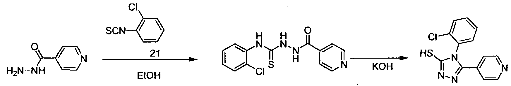 - CHCYNQFNYGXOSI-UHFFFAOYSA-N Sc1nnc(-c2ccncc2)[n]1-c(cccc1)c1Cl Chemical compound Sc1nnc(-c2ccncc2)[n]1-c(cccc1)c1Cl CHCYNQFNYGXOSI-UHFFFAOYSA-N 0.000 description 1