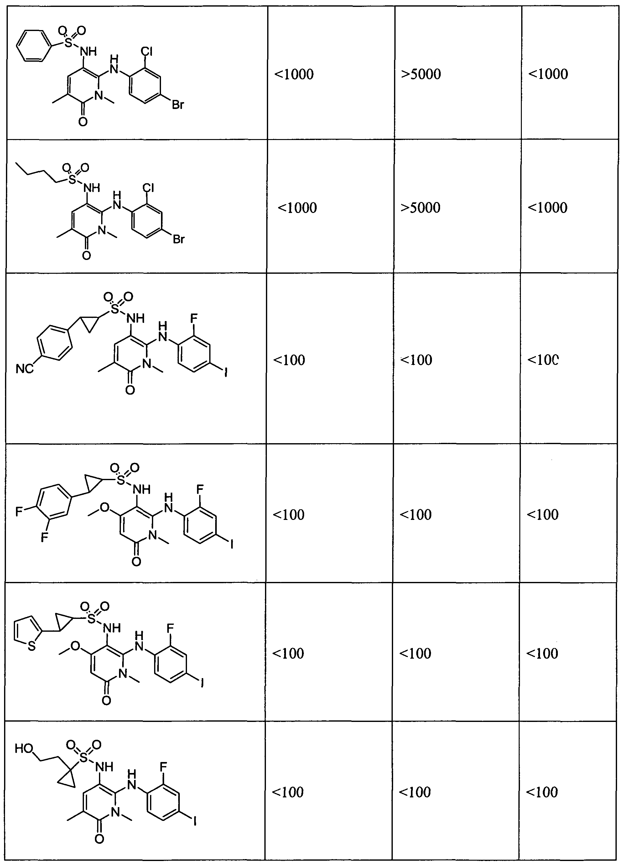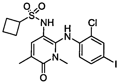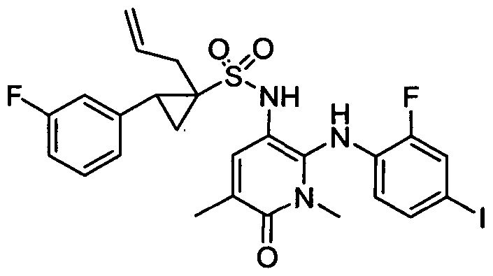[421] N-(3,4-difluoro-2-(2-fluoro-4-iodophenylamino)-6-methoxyphenyl)-2-(2,4- difluorophenyl)cyclopropane-l-sulfonamide