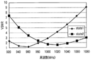 - the figure which shows the structural example of the frequency switching circuit in the antenna apparatus of FIG. The figure which shows the simulation result of VSWR of the antenna apparatus of FIG. 8 at the time of applying the structure of FIG. 12A and FIG. 12B, respectively.
