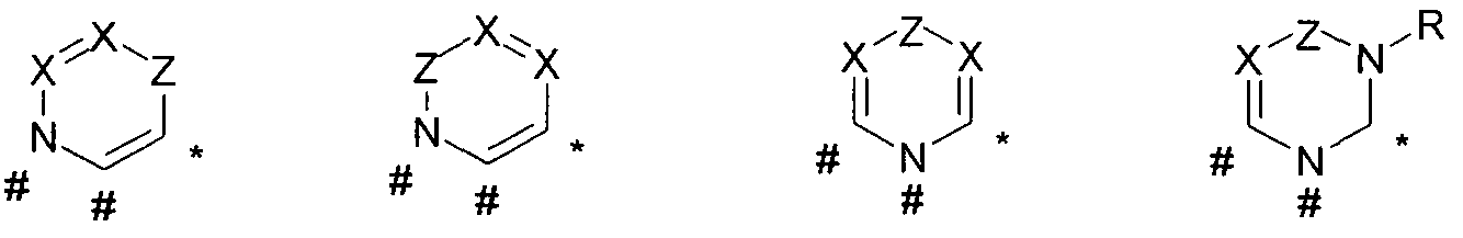 - Cy1 is the same or different on each occurrence together with the group A and the two groups Y is a six-membered ring or a five-membered ring, one group Y in Cy1 for C and the other group Y in Cy1 for N, if Cy1 represents a six-membered ring and both Groups Y in Cy1 stand for C or both for N, if Cy1 represents a five-ring; Cy1 may be substituted by one or more radicals R;