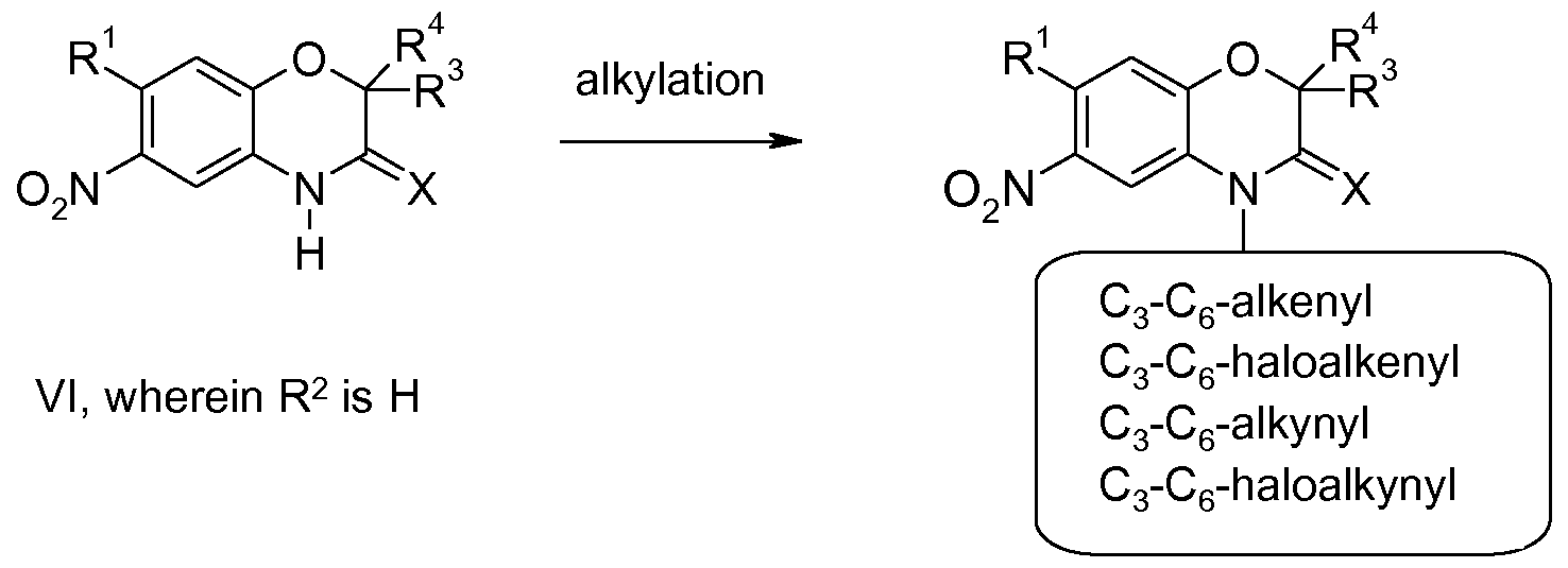 - R 2 is C3-C6-alkynyl or C3-C6-haloalkynyl