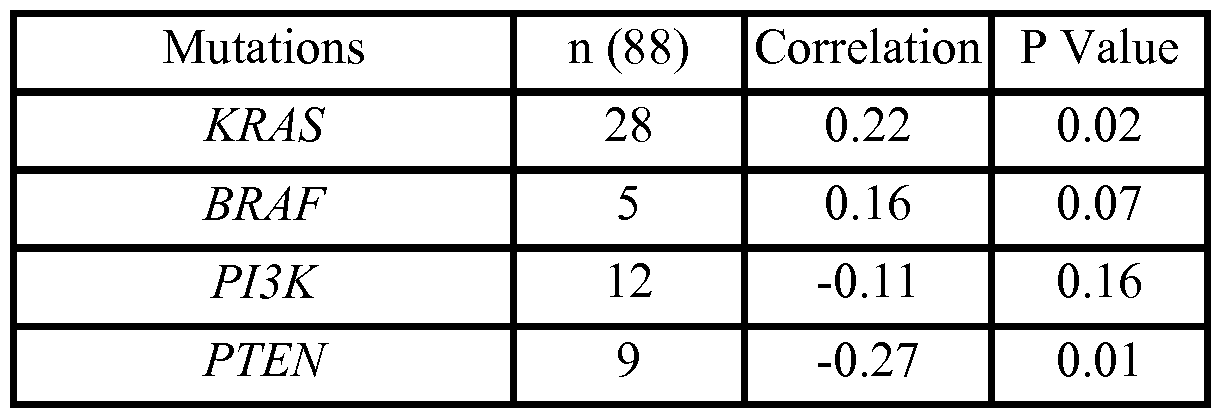 - the invention provides a method of identifying patients with cancer who are most likely to benefit or not benefit from treatment with an IGF- IR kinase inhibitor, comprising: obtaining a sample of a patient's tumor, determining if tumor cells of the sample possess a mutant K- RAS gene; determining if tumor cells of the sample possess a mutant B-RAF gene; determining if tumor cells of the sample possess a mutant PIK3CA gene; and identifying the patient as likely to benefit from treatment with an IGF- IR kinase inhibitor if mutant K-ras or mutant B-RAF is present in the tumor cells of the patient in the absence of mutant PIK3CA expression; and identifying the patient as likely to not benefit from treatment with an IGF-IR kinase inhibitor if mutant PIK3CA is present in the tumor cells of the patient.