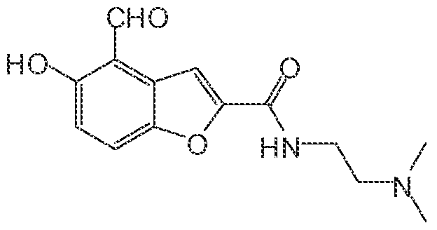 1388] 4-Formyi-5-hydroxy-N-(2-methoxyethyI)benzofuran-2-carboxamide was obtained by the above procedure from amine Al. 17.6% yield. 3 HNMR (DMSO, 400 MHz): δ 10.80 (s, 1H, OH), 10.47 (s, 1H, CHO), 8.77 (t, l ! L J 5.2 Hz, NH), 7.96 (d, l ! L J 0.8 Hz, ArH), 7.81 (dd, 1H, J= 8.8 Hz, 0.8 Hz, ArH), 7.06 (d, 1H, J= 8.8 Hz, ArH), 3.41 (m, 41 1 2CH2), 3.24 (s, 3H, OCH3). MS [ESi, MH ]; 264.1.