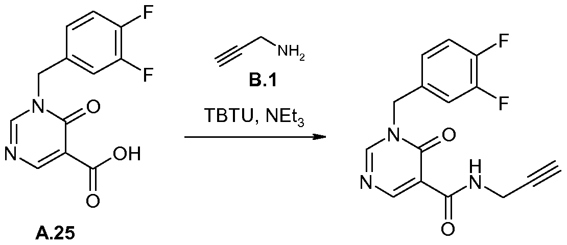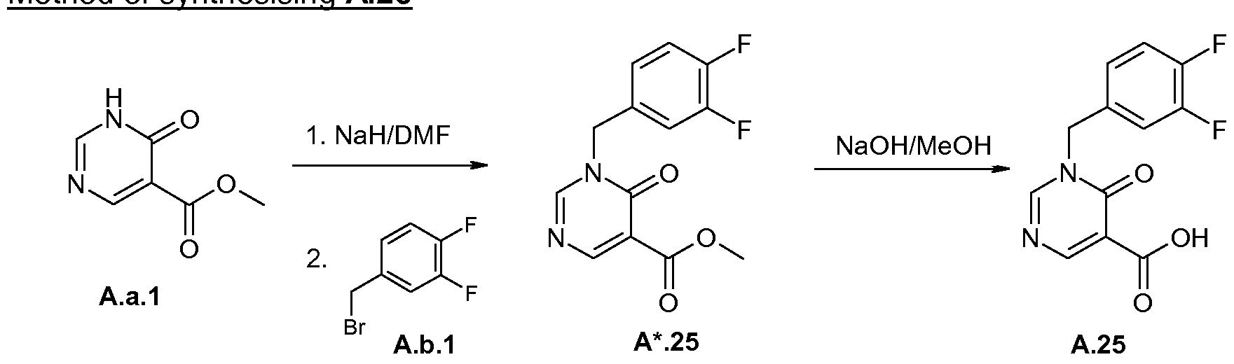 - ROQVJYWVKQZTOH-UHFFFAOYSA-N COC(C=C1C(O)=O)=NN(Cc(cc2F)ccc2F)C1=O Chemical compound COC(C=C1C(O)=O)=NN(Cc(cc2F)ccc2F)C1=O ROQVJYWVKQZTOH-UHFFFAOYSA-N 0.000 description 1