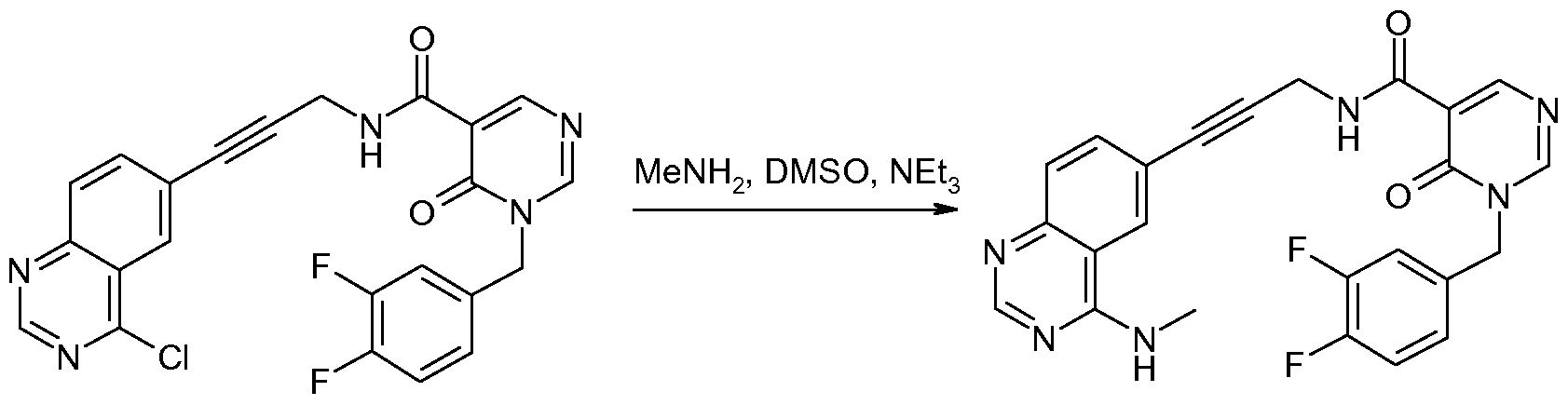 - MLTGBTLALOAPTR-UHFFFAOYSA-N CN(C)CCCNC(c1cc(cc(cc2)C#CCNC(C3=CN=CN(Cc(cc4F)ccc4F)C3=O)=O)c2nc1)=O Chemical compound CN(C)CCCNC(c1cc(cc(cc2)C#CCNC(C3=CN=CN(Cc(cc4F)ccc4F)C3=O)=O)c2nc1)=O MLTGBTLALOAPTR-UHFFFAOYSA-N 0.000 description 1