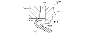 - the end portion 412 of the dust cover 400 is held between the ball seat 301 and the flange portions 321 and 311 of the housing 302 (for example, Patent Documents 1 and 2).