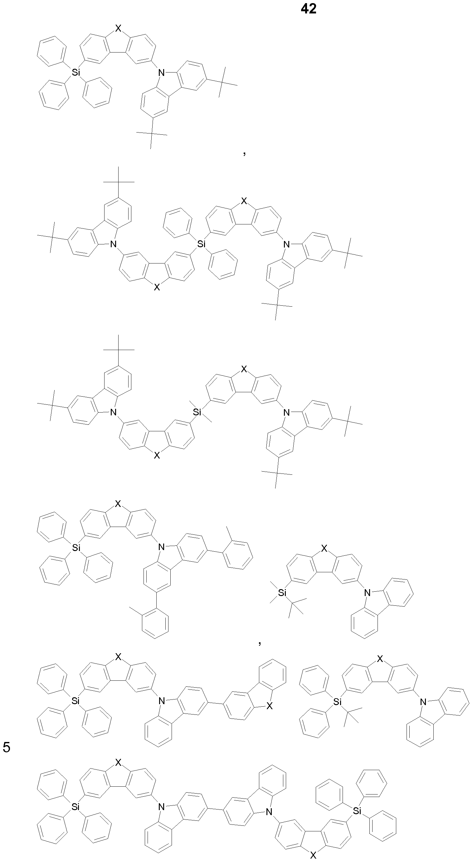 20), JP2008074939 (the compounds 1 to 256), JP2008021687 (the compounds 1 to 50), WO20071 19816 (the compounds 1 to 37), WO2010087222 (the compounds H-1 to H-31 ), WO2010095564 (the compounds HOST-1 to HOST-61 ), WO2007108362, WO2009003898, WO2009003919, WO2010040777, US2007224446 and WO06128800.