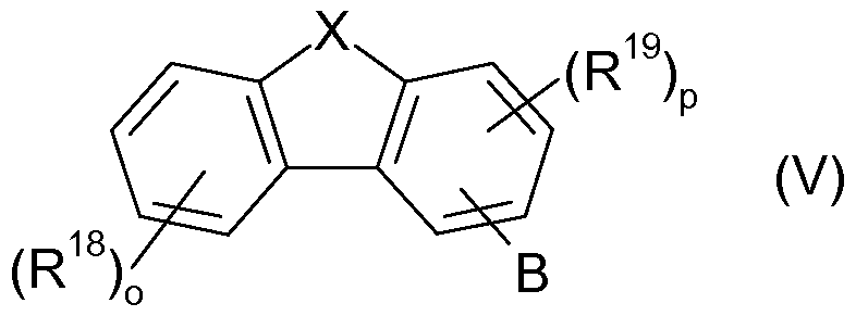 The compounds of formula (VI) may for example be prepared as described in the processes mentioned in WO2009/003898 or in analog processes. The compounds of the general formula (VI) can be used as a matrix (diluent material), hole/exciton blocker, electron/exciton blocker, electron transport material or hole transport material in combination with the heteroleptic complexes claimed, which then serve as emitters. Inventive OLEDs which include both at least one compound of the formula (V) and a compound of the formula (I) exhibit particularly good efficiencies and lifetimes. Depending on the function in which the compound of the formula (VI) is used, it is present in pure form or in different mixing ratios. In a particularly preferred embodiment one or more compounds of formula (VI) are used as matrix material in the light emitting layer and/or as hole/exciton blockers. The inventive OLEDs can be used in all devices in which electroluminescence is useful. Suitable devices are preferably selected from stationary and mobile visual display units and illumination means. The present invention therefore also relates to a device selected from the group consisting of stationary visual display units and mobile visual display units and illumination means, comprising an inventive OLED.