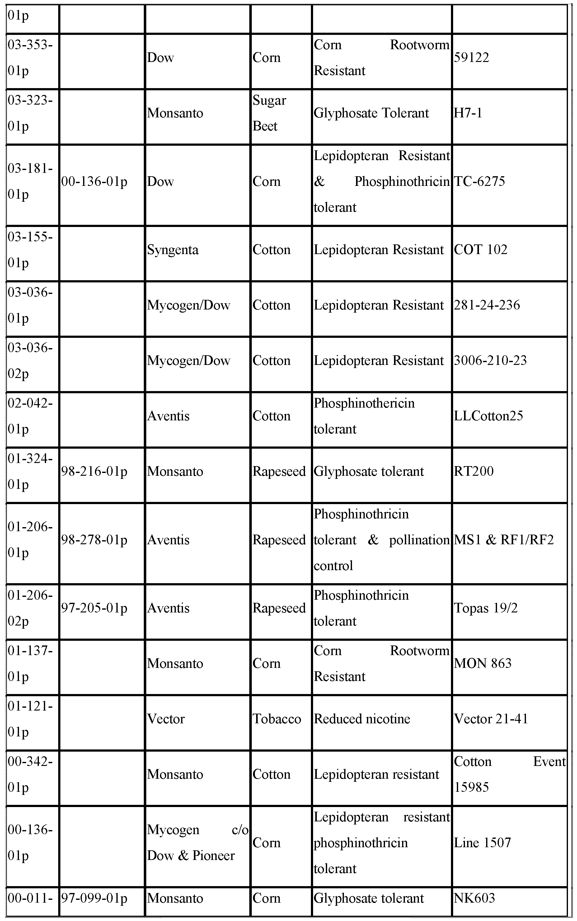 - Technical descriptions of the transformation events can be found in the individual petition documents which are obtainable from APHIS, for example on the APHIS website, by reference to this petition number. These descriptions are herein incorporated by reference.