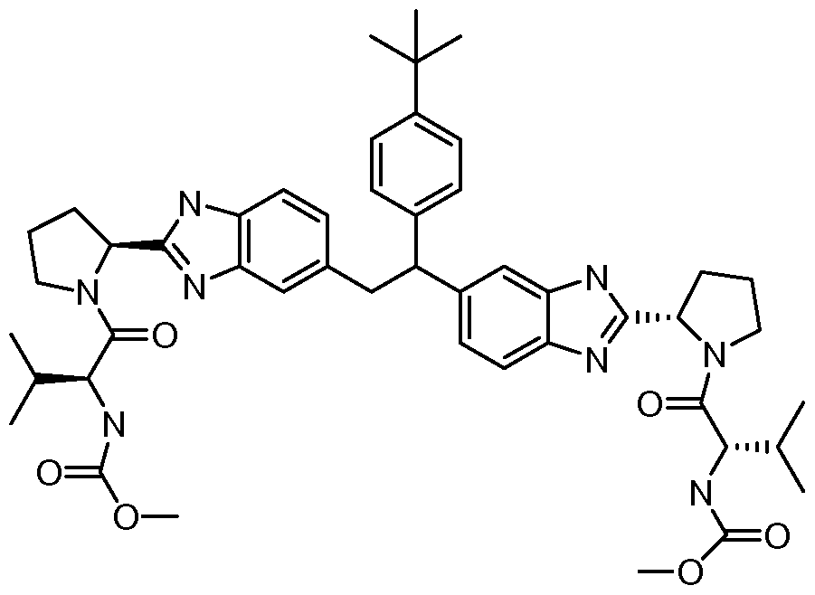 methyl {(21S)-l-[(21S)-2- {6-[l -(4-?er?-butylphenyl)-2-{2-[(21S)-l -{(21S)-2-[(methoxycarbonyl)amino]-3- methylbutanoyl } pyrrolidin-2 -yl] - l/f-benzimidazol-5 -yl } ethyl] - 1 f-benzimidazol-2-yl } pyrrolidin- 1 - yl] -3 -methyl- 1 -oxobutan-2 -yl } carbamate