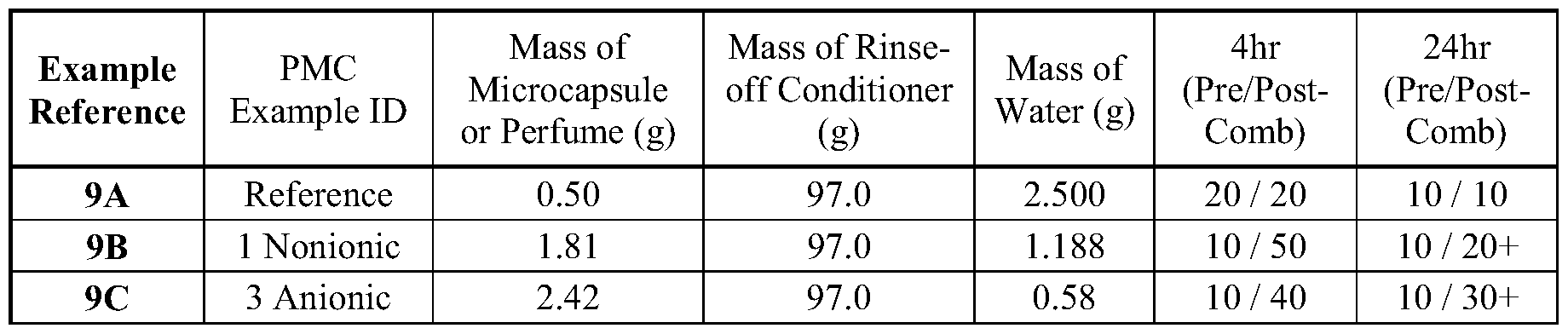 - the conditioner composition comprising anionic polyacrylate microcapsules, along with a deposition aid such as a cationic deposition polymer or an aminosilicone, delivers a higher deposition rate than conditioner compositions containing non- anionic polyacrylates.