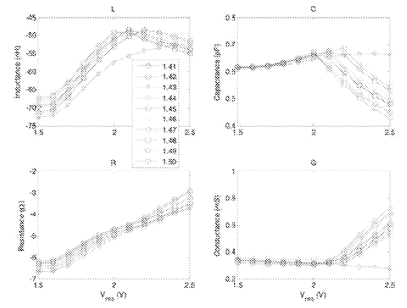 - Fig. 5 is a plot the equivalent circuit parameters of Fig. 4 as a function of control voltage VR.