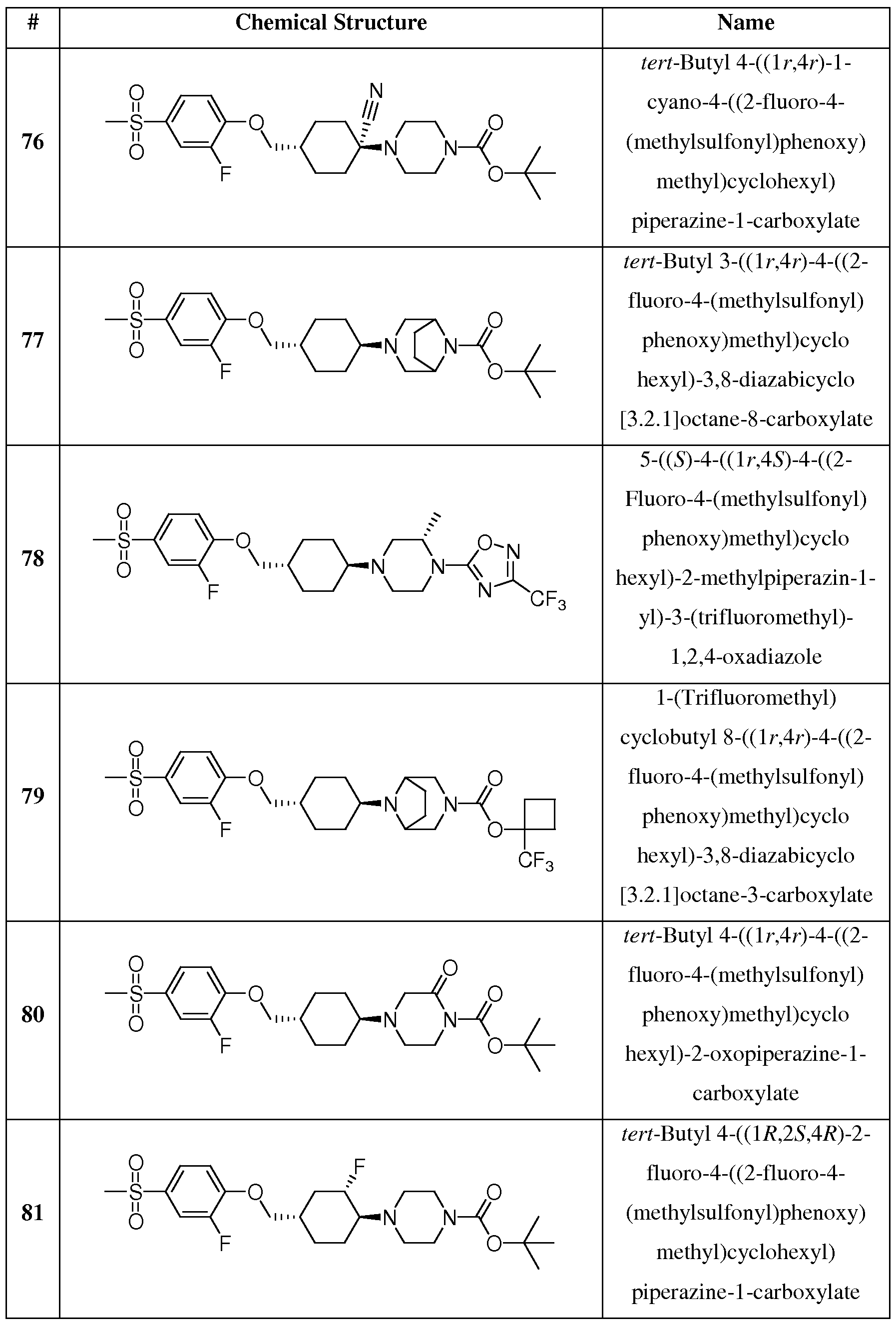 (methylsulfonyl)phenoxy)methyl)cyclohexyl)-3,8-diazabicyclo[3.2.1]octane-3-carboxylate (Compound 79).