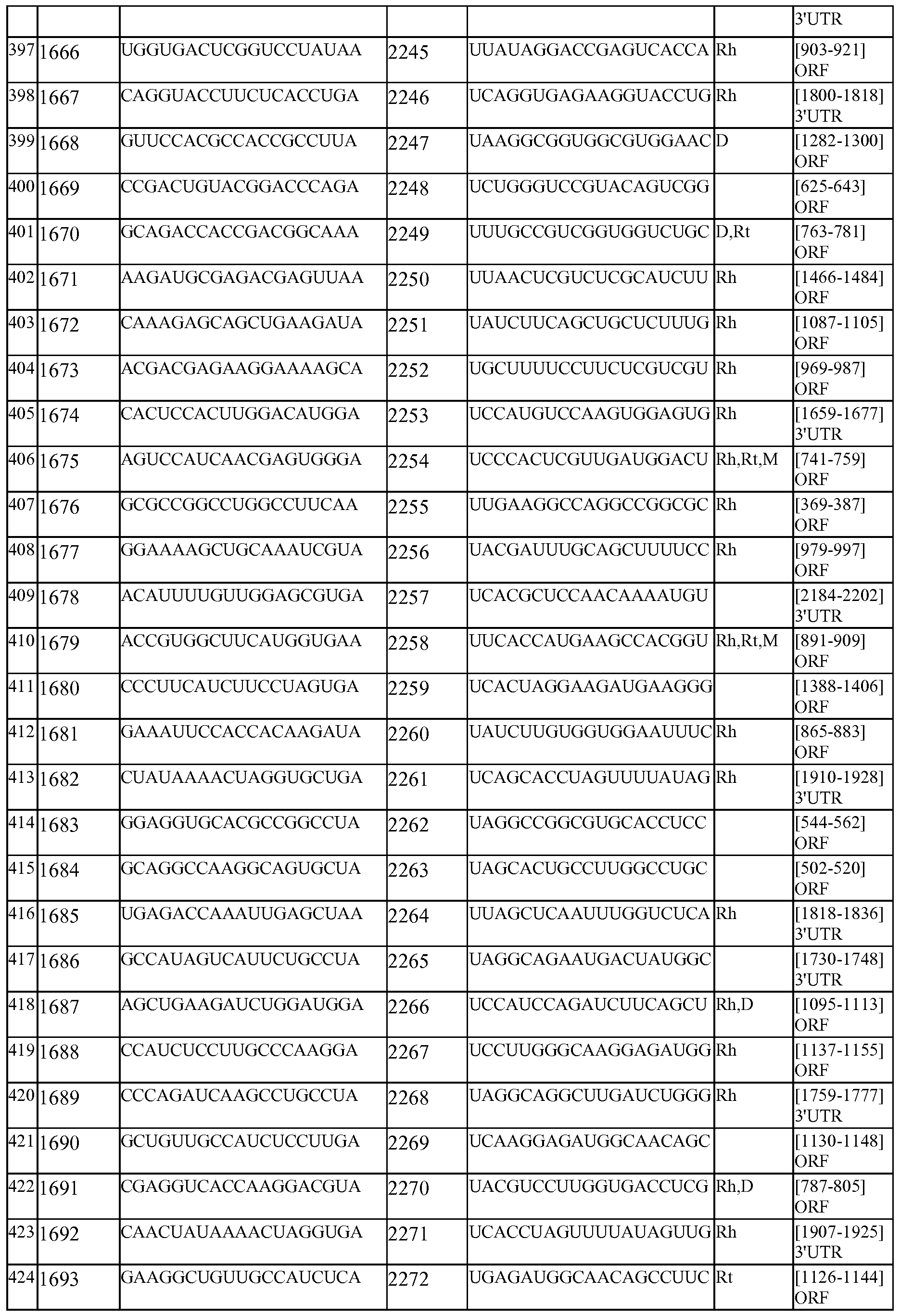 - a pharmaceutical composition comprising a double-stranded nucleic acid molecule comprising a sense strand and an antisense strand wherein the sense and antisense strands are selected from the oligonucleotides described as SERPTNH1_2 (SEQ ID NOS: 60 and 127), SERPTNHl_45a (SEQ ID NOS: 98 and 165), and SERPTNH1_51 (SEQ ID NOS: 101 and 168) in Table 4, infra, and a drug carrier comprising a mixture of a lipid vesicle and a retinoid or a retinoid conjugate.