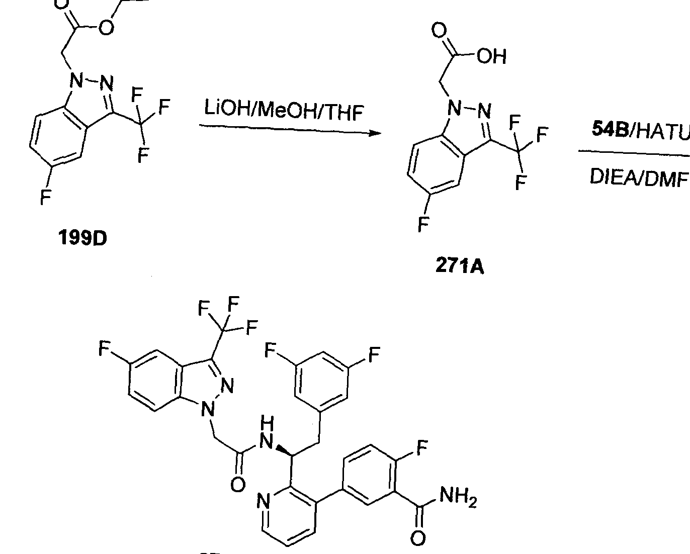 Synthesis of (S)-5 -(2-(2-(3 ,5-difluorophenyl)- 1 -(2-(2-(trifluoromethyl)- 1 H-indol- 1 - yl)acetamido)ethyl)pyridin-3-yl)-2-fluorobenzamide (599):