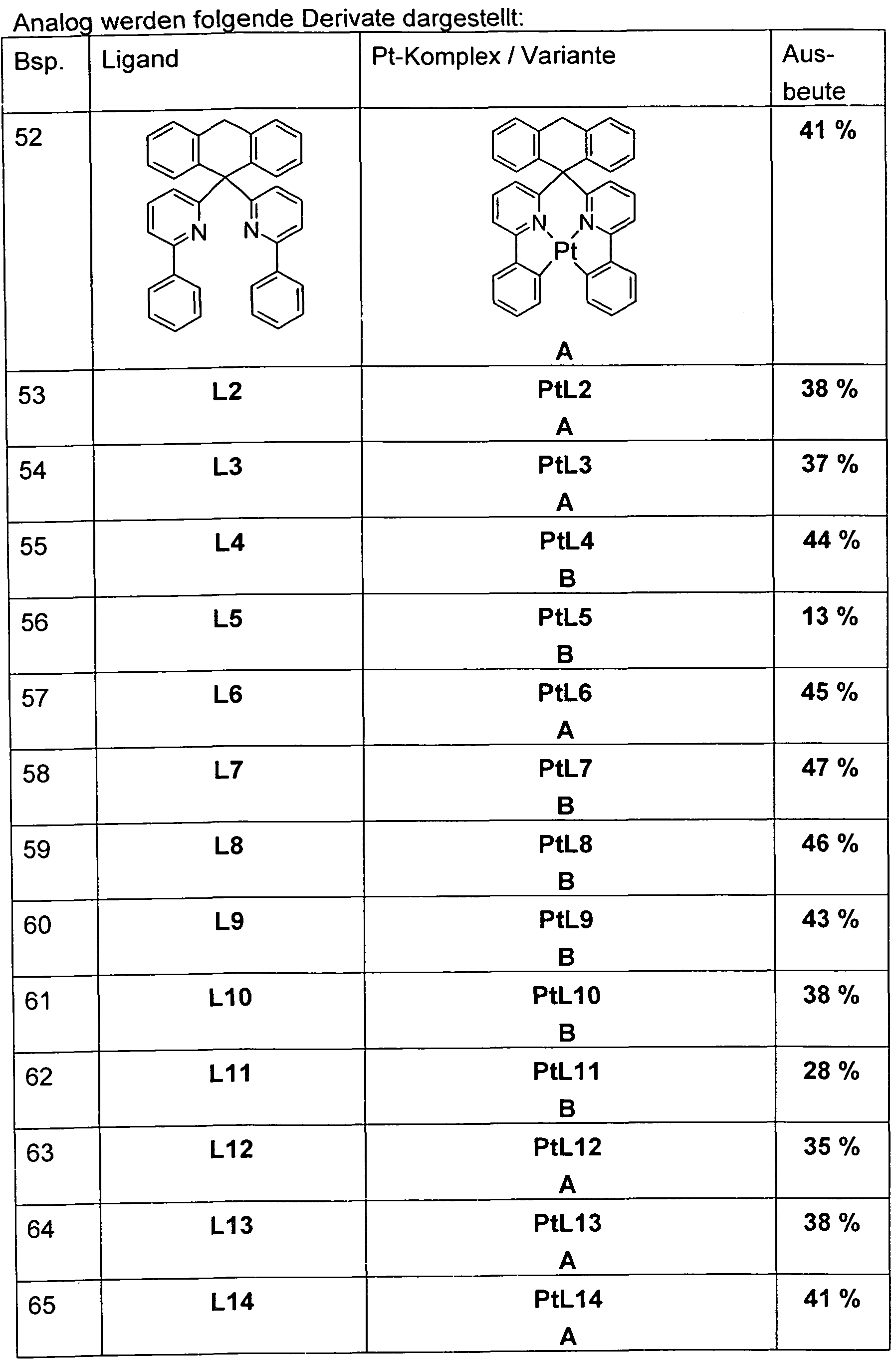 - An improvement of the platinum complexes used can be achieved by using metal complexes with tetradentate ligands, whereby the complexes have a higher thermal stability (WO 2004/108857, WO 2005/042550, WO 2005/042444).