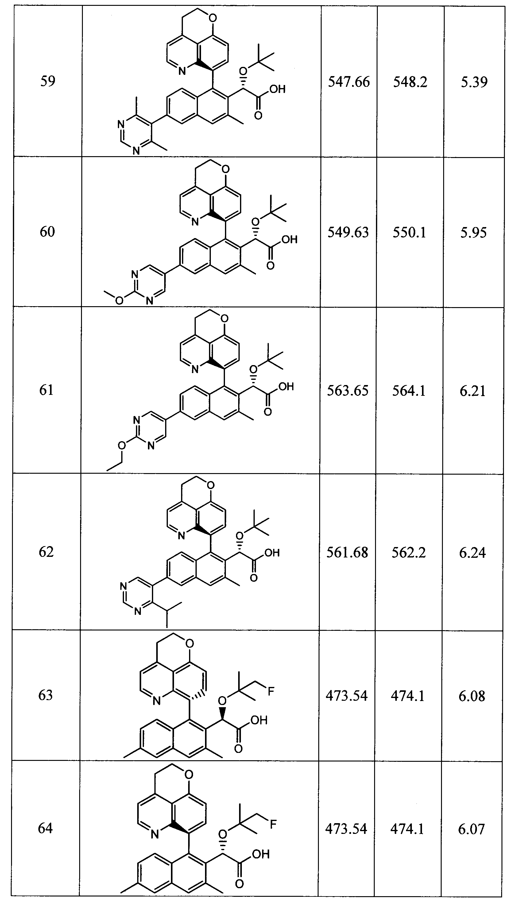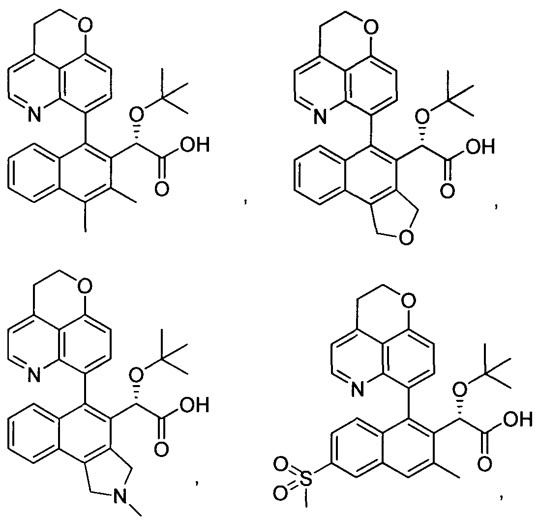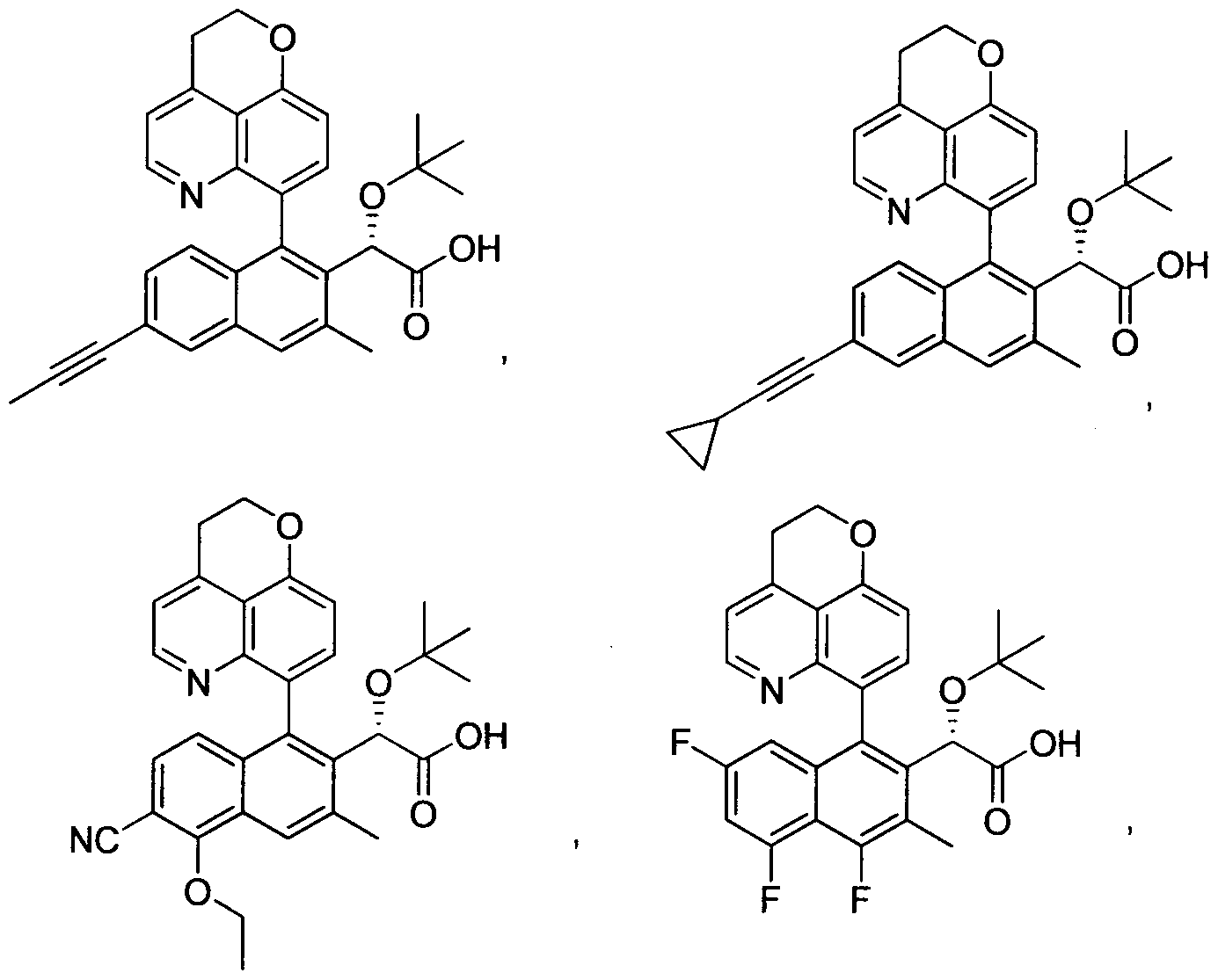 - JKTRLUTUHRSRBJ-MHZLTWQESA-N CC(C)(C)O[C@H](C(O)=O)c1c(C)c(C)c(cccc2)c2c1-c(cc1)c2nccc3c2c1OCC3 Chemical compound CC(C)(C)O[C@H](C(O)=O)c1c(C)c(C)c(cccc2)c2c1-c(cc1)c2nccc3c2c1OCC3 JKTRLUTUHRSRBJ-MHZLTWQESA-N 0.000 description 2