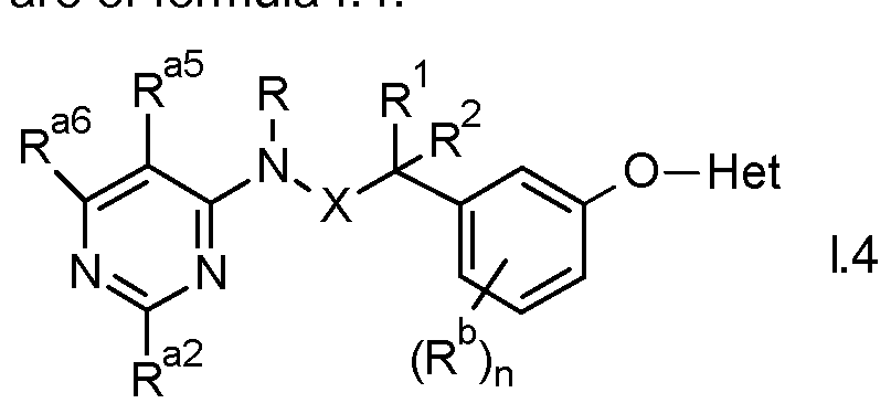- the compounds according to the present invention differ from those described in the abovementioned publications by the specific substitution pattern of the pyrimidyl moiety in position 2 and position 5 or 6 and the linker X as defined herein.