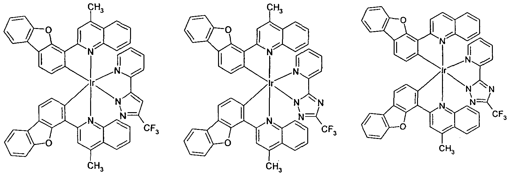 complexes with the same push-pull-substitution pattern on the phenyl- pyridine ligand, which is present twice, and all complexes show light-blue emission only. The photoluminescence (PL) efficiencies disclosed are very low (42% max.), and due to the compactness of the emitters, they are clearly intended for use in evaporated devices.
