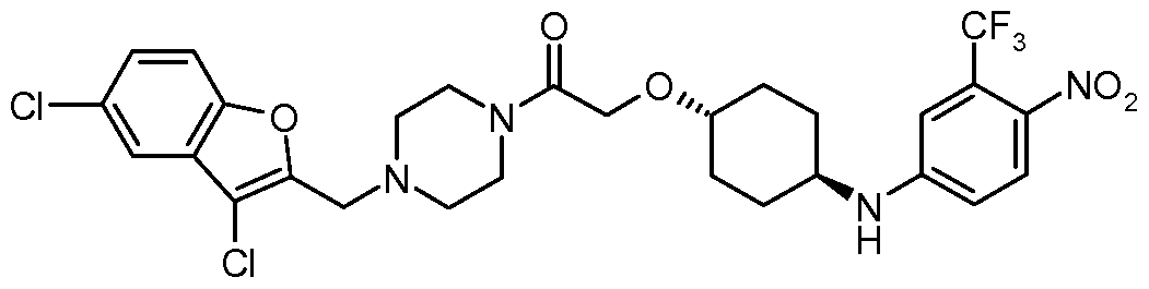 - MAXGVNBWSSGDRZ-UAPYVXQJSA-N [O-][N+](c(c(C(F)(F)F)c1)ccc1N[C@H](CC1)CC[C@@H]1OCC(N(CC1)CCN1c1nc2cc(F)ccc2[s]1)=O)=O Chemical compound [O-][N+](c(c(C(F)(F)F)c1)ccc1N[C@H](CC1)CC[C@@H]1OCC(N(CC1)CCN1c1nc2cc(F)ccc2[s]1)=O)=O MAXGVNBWSSGDRZ-UAPYVXQJSA-N 0.000 description 1