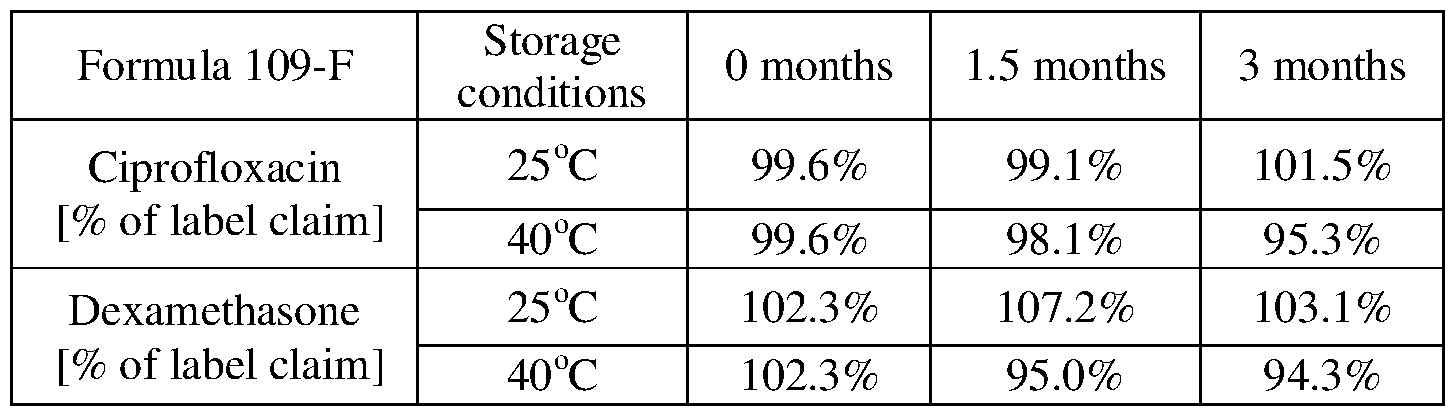 Table 17. Stability of Ciprofloxacin and Dexamethasone in formula #109-F