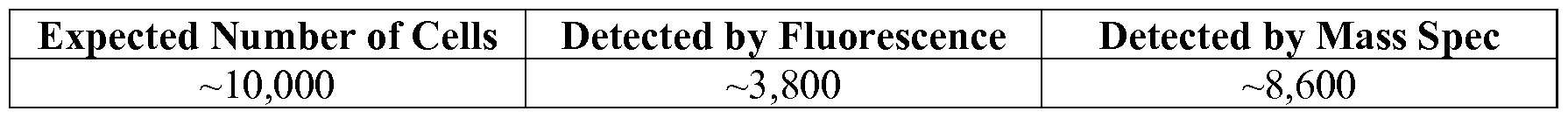 - the described composite cell microarrays comprise a plurality of reactive sites, in which the individual reactive sites are configured for providing a specific quantity of biological cells for the downstream analysis by mass spectrometry.